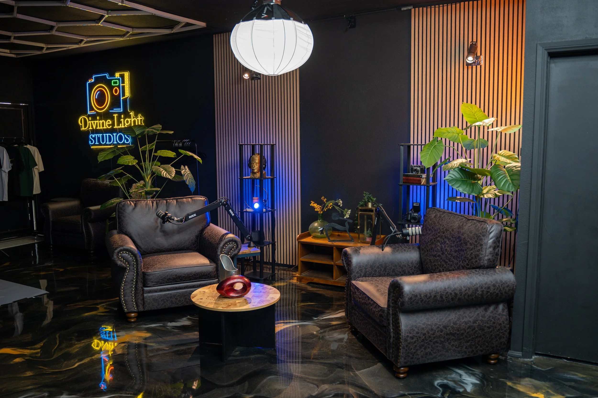 Step into Divine Light Studios, a creative space designed for visual storytellers and content creators alike. Whether you’re capturing stunning photo shoots, producing engaging video content, or recording your next podcast, we provide a professional environment to bring your vision to life. Book your session today and create something truly expectational.